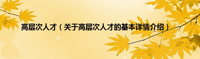 本文关于高层次人才的基本详情介绍就讲解完毕,希望对大家有所帮助。