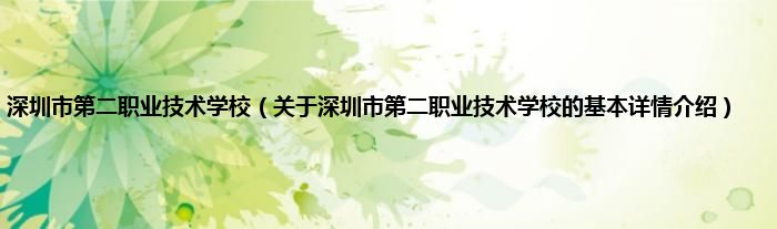 本文关于深圳市第二职业技术学校的基本详情介绍就讲解完毕,希望对大家有所帮助。