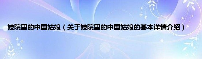 大家好我是小蝌蚪,妓院里的中国姑娘,关于妓院里的中国姑娘的基本详情介绍很多人还不知道,那么现在让我们一起来看看吧!