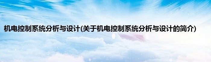 大家好,机电控制系统分析与设计,关于机电控制系统分析与设计的简介很多人还不知道,现在让我们一起来看看吧!