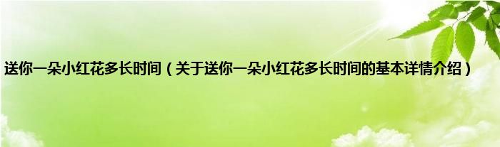 本文关于送你一朵小红花多长时间的基本详情介绍就讲解完毕,希望对大家有所帮助。