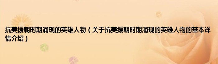 抗美援朝时期涌现的英雄人物(关于抗美援朝时期涌现的英雄人物的基本详情介绍)