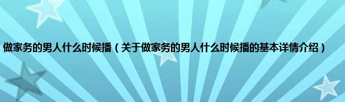 本文关于做家务的男人什么时候播的基本详情介绍就讲解完毕,希望对大家有所帮助。