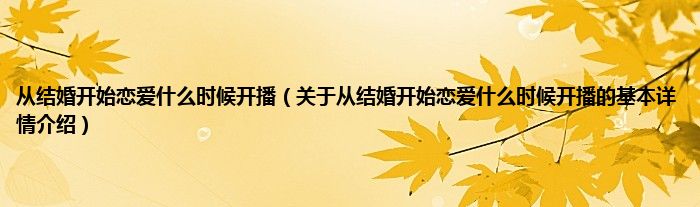 本文关于从结婚开始恋爱什么时候开播的基本详情介绍就讲解完毕,希望对大家有所帮助。