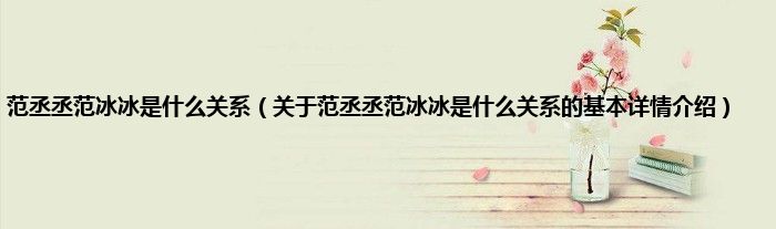 范丞丞范冰冰是什么关系(关于范丞丞范冰冰是什么关系的基本详情介绍)