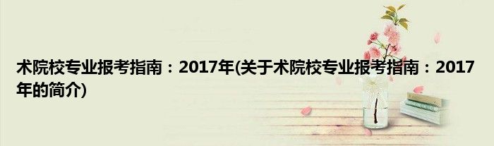 本文关于术院校专业报考指南:2017年的简介就讲解完毕,希望对大家有所帮助。