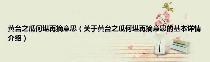 本文关于黄台之瓜何堪再摘意思的基本详情介绍就讲解完毕,希望对大家有所帮助。