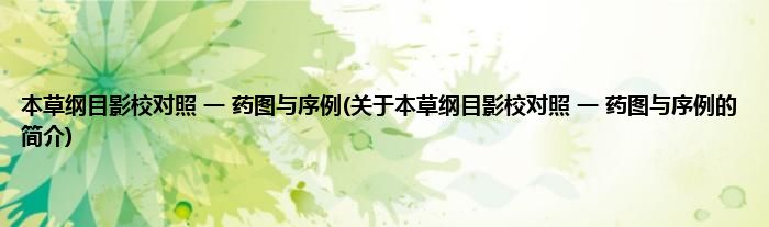 本文关于本草纲目影校对照,一,药图与序例的简介就讲解完毕,希望对大家有所帮助。