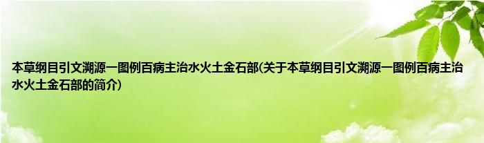 本文关于本草纲目引文溯源一图例百病主治水火土金石部的简介就讲解完毕,希望对大家有所帮助。