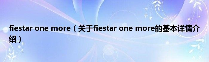 本文关于fiestar one more的基本详情介绍就讲解完毕,希望对大家有所帮助。