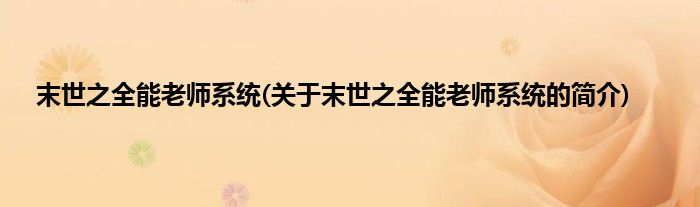 本文关于末世之全能老师系统的简介就讲解完毕,希望对大家有所帮助。