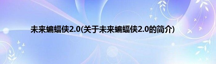 大家好,未来蝙蝠侠2.0,关于未来蝙蝠侠2.0的简介很多人还不知道,现在让我们一起来看看吧!