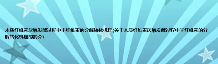 木质纤维素厌氧发酵过程中半纤维素的分解转化机理(关于木质纤维素厌氧发酵过程中半纤维素的分解转化机理的简介)