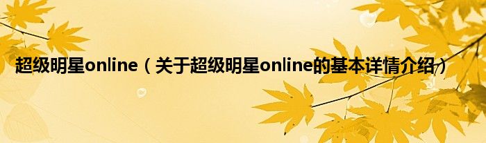 本文关于超级明星online的基本详情介绍就讲解完毕,希望对大家有所帮助。