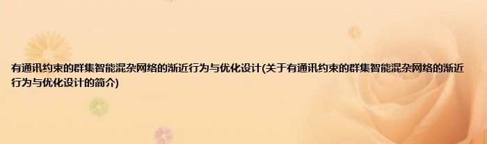 大家好,有通讯约束的群集智能混杂网络的渐近行为与优化设计,关于有通讯约束的群集智能混杂网络的渐近行为与优化设计的简介很多人还不知道,现在让我们一起来看看吧!
