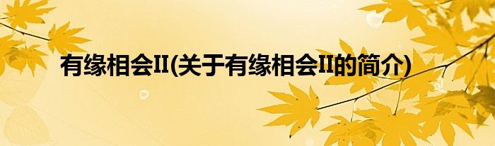 大家好,有缘相会II,关于有缘相会II的简介很多人还不知道,现在让我们一起来看看吧!