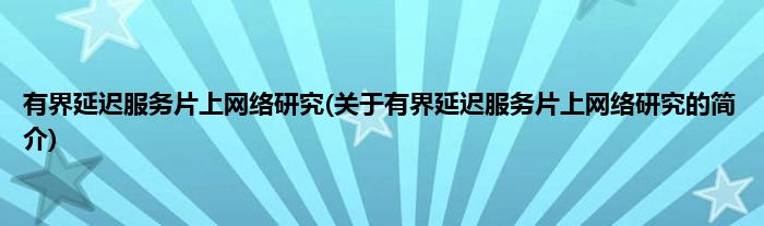 大家好,有界延迟服务片上网络研究,关于有界延迟服务片上网络研究的简介很多人还不知道,现在让我们一起来看看吧!