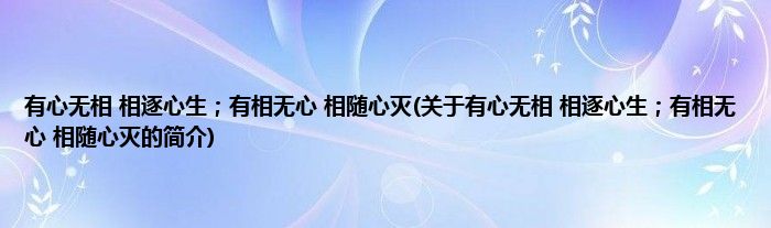 本文关于有心无相,相逐心生;有相无心,相随心灭的简介就讲解完毕,希望对大家有所帮助。