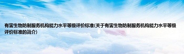 大家好,有害生物防制服务机构能力水平等级评价标准,关于有害生物防制服务机构能力水平等级评价标准的简介很多人还不知道,现在让我们一起来看看吧!