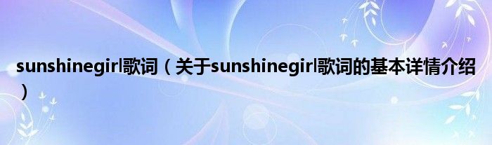 本文关于sunshinegirl歌词的基本详情介绍就讲解完毕,希望对大家有所帮助。