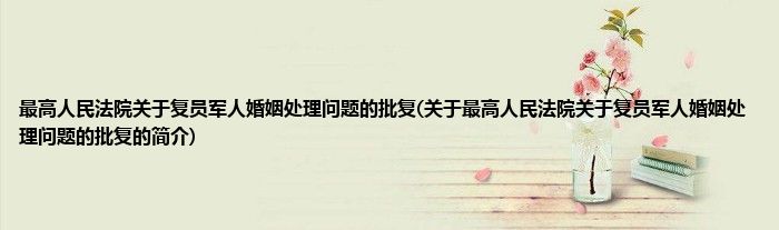 大家好,最高人民法院关于复员军人婚姻处理问题的批复,关于最高人民法院关于复员军人婚姻处理问题的批复的简介很多人还不知道,现在让我们一起来看看吧!
