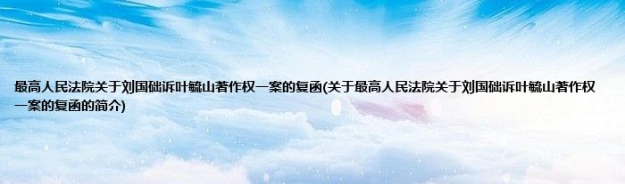 大家好,最高人民法院关于刘国础诉叶毓山著作权一案的复函,关于最高人民法院关于刘国础诉叶毓山著作权一案的复函的简介很多人还不知道,现在让我们一起来看看吧!