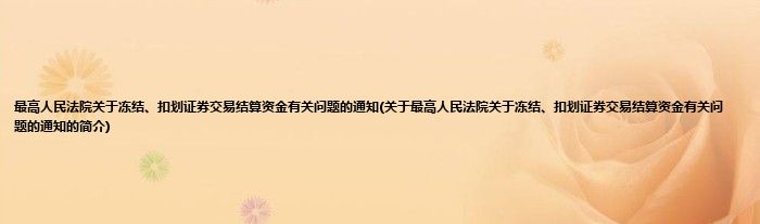 大家好,最高人民法院关于冻结、扣划证券交易结算资金有关问题的通知,关于最高人民法院关于冻结、扣划证券交易结算资金有关问题的通知的简介很多人还不知道,现在让我们一起来看看吧!