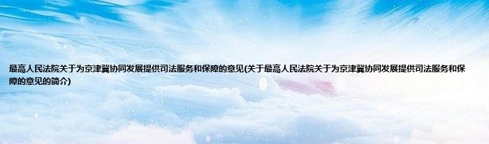 大家好,最高人民法院关于为京津冀协同发展提供司法服务和保障的意见,关于最高人民法院关于为京津冀协同发展提供司法服务和保障的意见的简介很多人还不知道,现在让我们一起来看看吧!