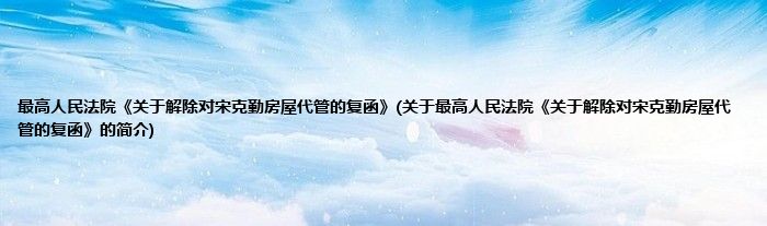 本文关于最高人民法院《关于解除对宋克勤房屋代管的复函》的简介就讲解完毕,希望对大家有所帮助。