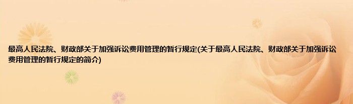 大家好,最高人民法院、财政部关于加强诉讼费用管理的暂行规定,关于最高人民法院、财政部关于加强诉讼费用管理的暂行规定的简介很多人还不知道,现在让我们一起来看看吧!