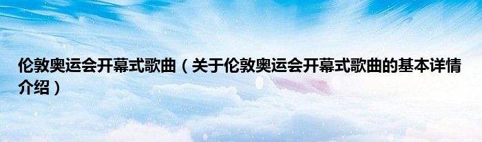 本文关于伦敦奥运会开幕式歌曲的基本详情介绍就讲解完毕,希望对大家有所帮助。