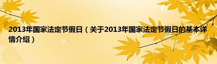 本文关于2013年国家法定节假日的基本详情介绍就讲解完毕,希望对大家有所帮助。