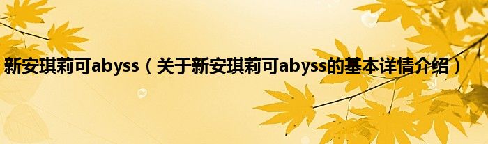 本文关于新安琪莉可abyss的基本详情介绍就讲解完毕,希望对大家有所帮助。