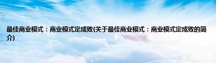 本文关于最佳商业模式:商业模式定成败的简介就讲解完毕,希望对大家有所帮助。