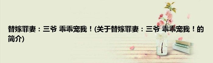 本文关于替嫁罪妻:三爷,乖乖宠我!的简介就讲解完毕,希望对大家有所帮助。