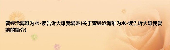 曾经沧海难为水-读告诉大雄我爱她(关于曾经沧海难为水-读告诉大雄我爱她的简介)