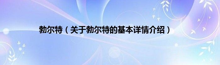 本文关于勃尔特的基本详情介绍就讲解完毕,希望对大家有所帮助。