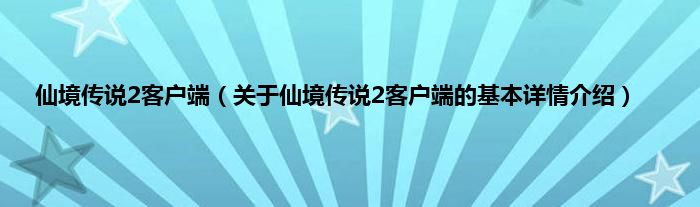 本文关于仙境传说2客户端的基本详情介绍就讲解完毕,希望对大家有所帮助。