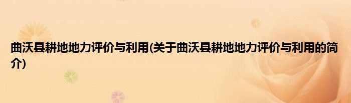 本文关于曲沃县耕地地力评价与利用的简介就讲解完毕,希望对大家有所帮助。