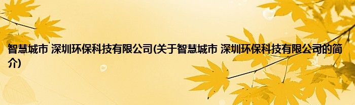 智慧城市深圳环保科技有限公司(关于智慧城市深圳环保科技有限公司的简介)