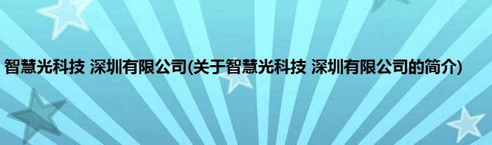本文关于智慧光科技 深圳有限公司的简介就讲解完毕,希望对大家有所帮助。