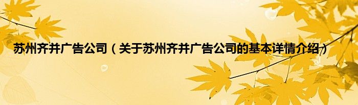 本文关于苏州齐并广告公司的基本详情介绍就讲解完毕,希望对大家有所帮助。