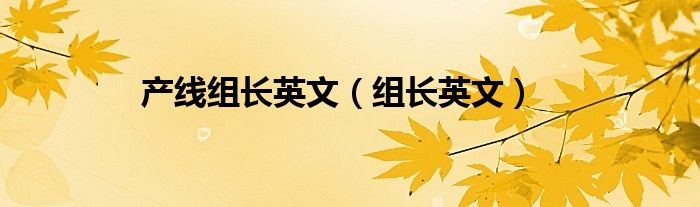 大家好,小问来为大家解答以上问题。产线组长英文,组长英文这个很多人还不知道,现在让我们一起来看看吧!1、Leader。以上就是【产线组长英文,组长英文】相关内容。