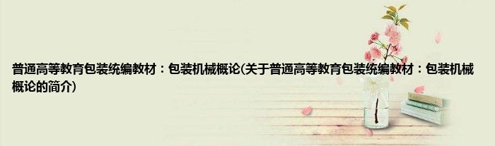 本文关于普通高等教育包装统编教材:包装机械概论的简介就讲解完毕,希望对大家有所帮助。