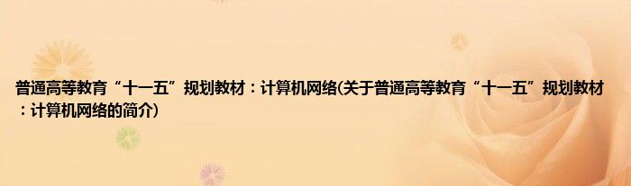大家好,普通高等教育“十一五”规划教材:计算机网络,关于普通高等教育“十一五”规划教材:计算机网络的简介很多人还不知道,现在让我们一起来看看吧!