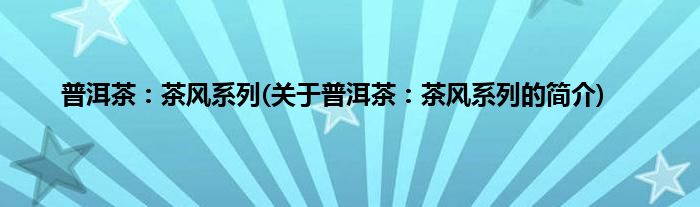 本文关于普洱茶:茶风系列的简介就讲解完毕,希望对大家有所帮助。