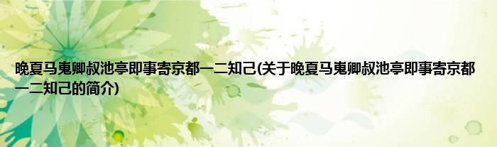 本文关于晚夏马嵬卿叔池亭即事寄京都一二知己的简介就讲解完毕,希望对大家有所帮助。
