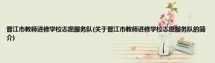 本文关于晋江市教师进修学校志愿服务队的简介就讲解完毕,希望对大家有所帮助。