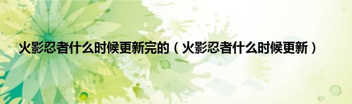 以上就是【火影忍者什么时候更新完的,火影忍者什么时候更新】相关内容。