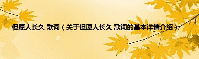 本文关于但愿人长久 歌词的基本详情介绍就讲解完毕,希望对大家有所帮助。